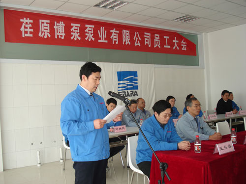 新聞中心 3月1日,在綿綿春雨中,荏原博泵泵業有限公司員工大會在公司餐廳召開。